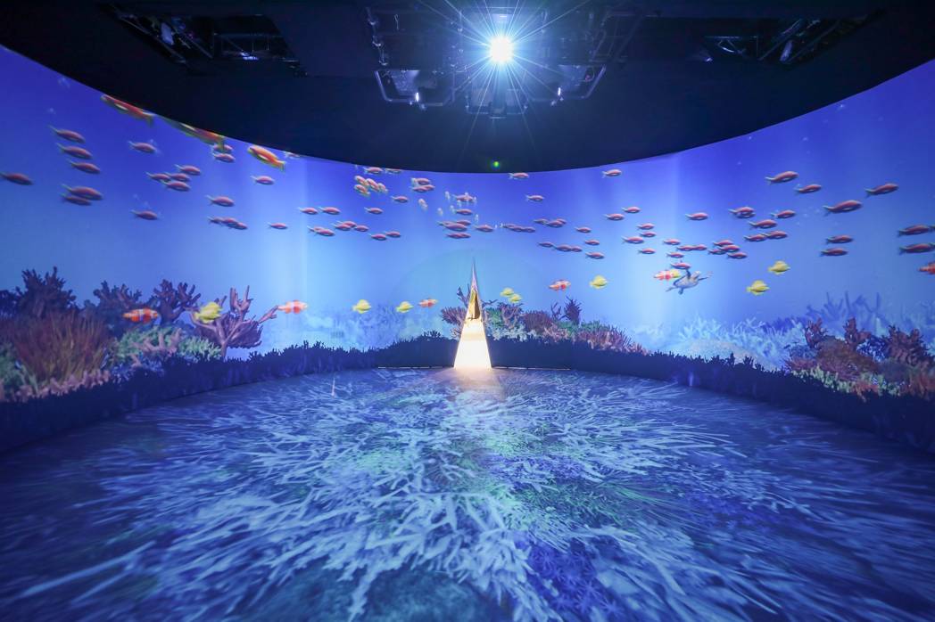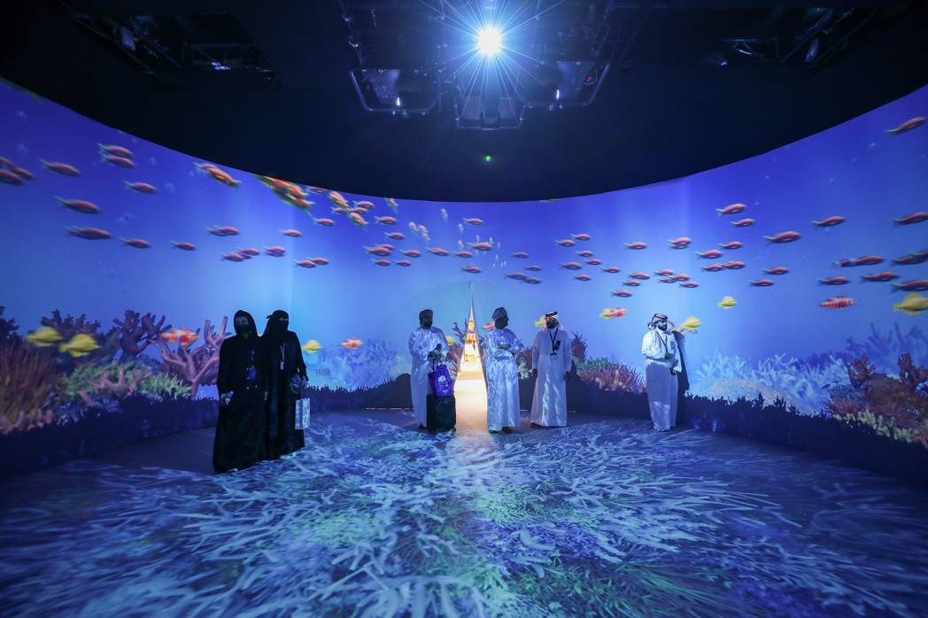 Guests entered a stunning 360-degree projection tunnel that showcased the region’s evolving landscape. An interactive floor, powered by concealed sensors, dynamically responded to movement transforming each step into part of the visual narrative.